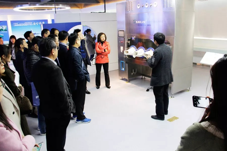 來訪領(lǐng)導(dǎo)專家首先參觀了泰林生物科技展廳,全面地了解了泰林生物的發(fā)展現(xiàn)狀,醫(yī)藥行業(yè)領(lǐng)導(dǎo)對無菌隔離器系統(tǒng)、過氧化氫滅菌器、微生物檢測系統(tǒng)及TOC分析儀等泰林核心產(chǎn)品產(chǎn)生了極大的興趣。參觀的同時也對產(chǎn)品的操作過程及性能特點(diǎn)展開了討論,充分肯定了泰林生物的科研技術(shù)及成果。