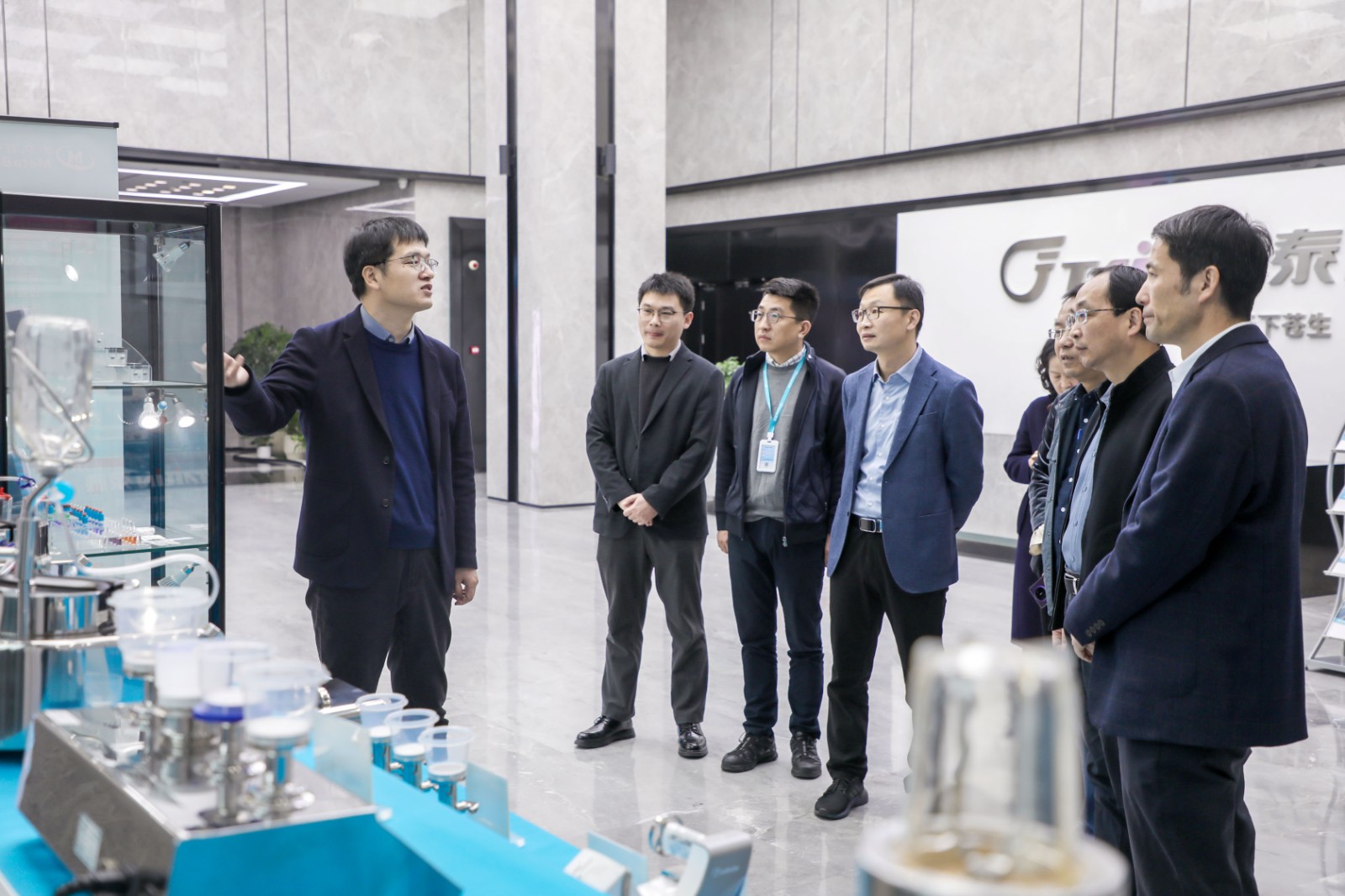 簽約結(jié)束后,在泰林生命科學(xué)副總經(jīng)理徐磊的陪同下,南方水中心張東總經(jīng)理一行參觀了泰林生命科學(xué)與泰林醫(yī)學(xué)工程兩個(gè)園區(qū),詳細(xì)了解泰林水生態(tài)(微生物、寄生蟲和藻類)檢測整體解決方案創(chuàng)新與探索,并就水生態(tài)檢測領(lǐng)域的研發(fā)與場景化應(yīng)用進(jìn)行了深入交流,同時(shí)對泰林在制藥、新材料、環(huán)保、半導(dǎo)體等領(lǐng)域的應(yīng)用與布局表示贊賞。